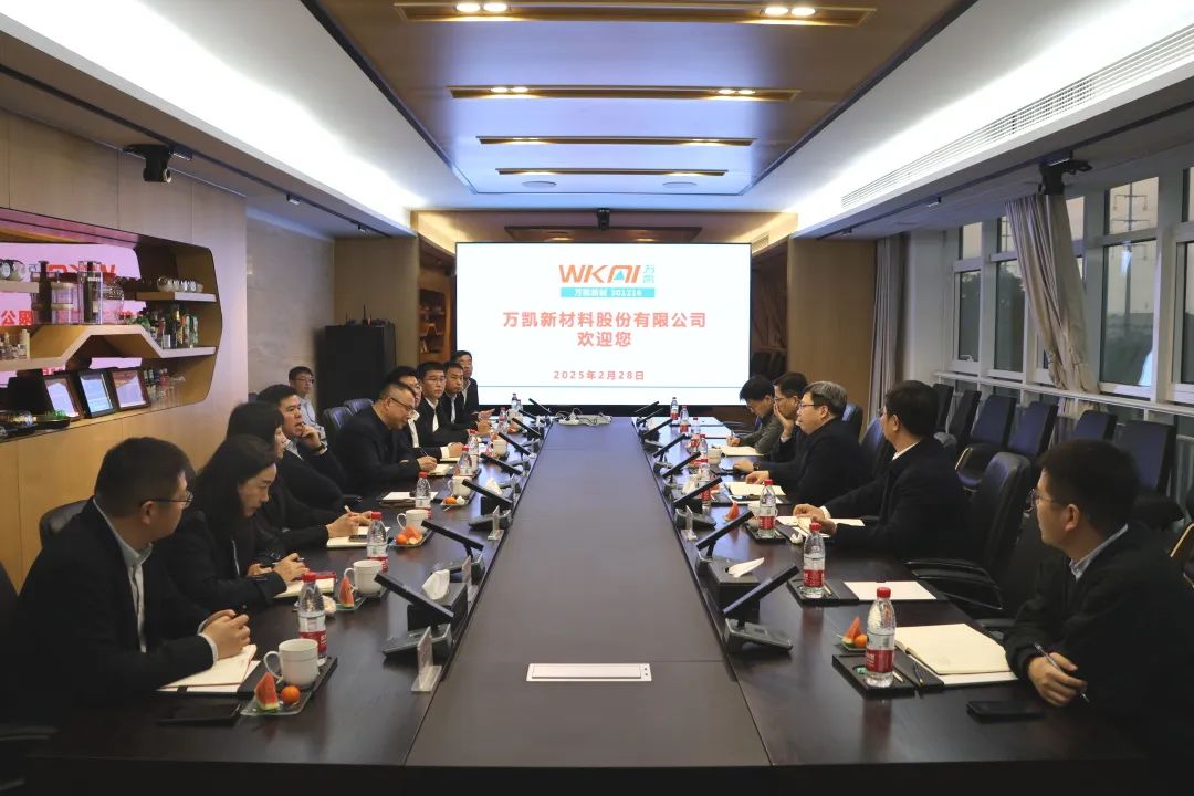 2月28日,海宁市委书记徐明良一行与中铁一局集团建安公司党委书记、董事长熊华兵等在公司进行了深入的交流座谈。万凯新材董事长沈志刚对大家的到来表示热烈欢迎,各方就进一步深化合作展开探讨。