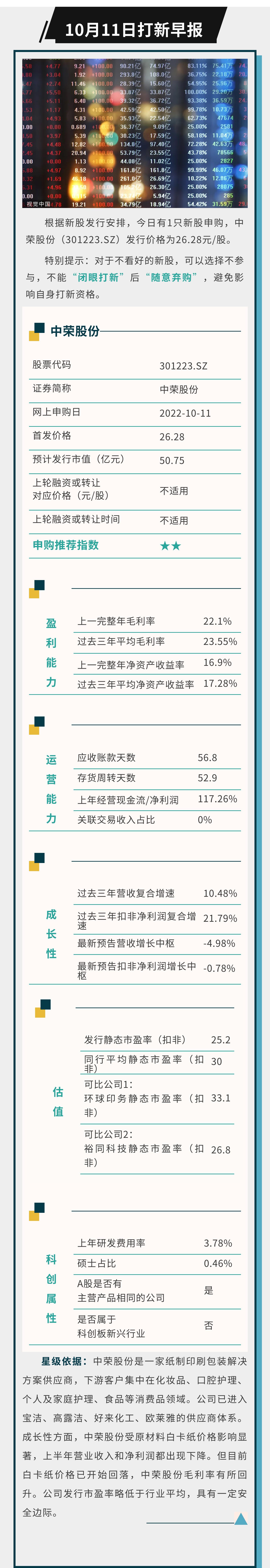 打新早报 | 中荣股份今日申购:原材料涨价、业绩下滑