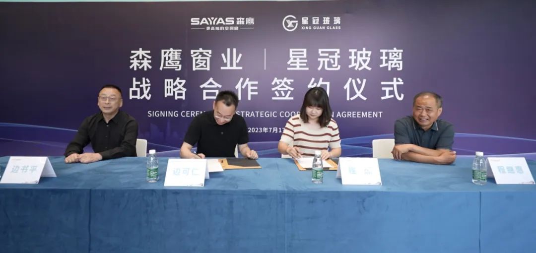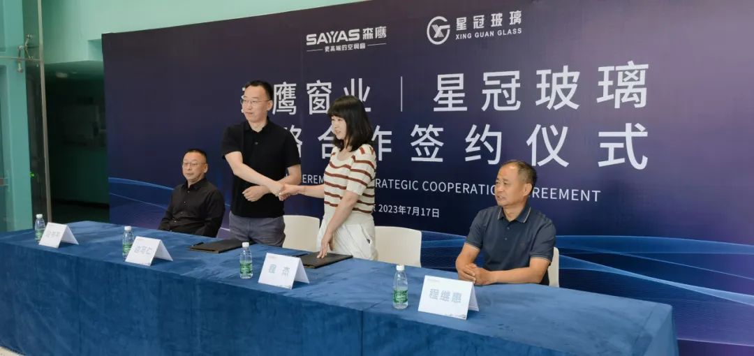 本次签约仪式在森鹰窗业总经理边可仁先生与星冠玻璃集团总经理程杰女士落笔签字后圆满成功,相信未来,双方将以合作为基础,充分发挥各自优势,共促行业发展!