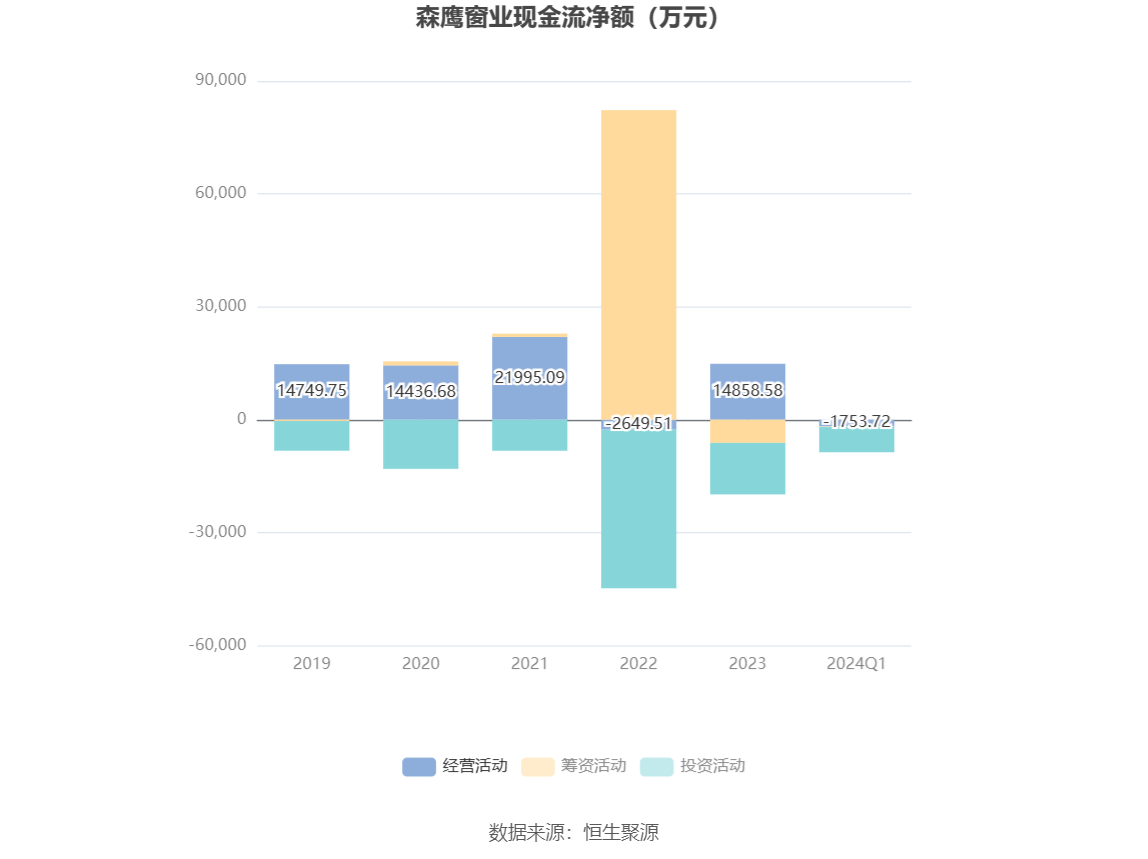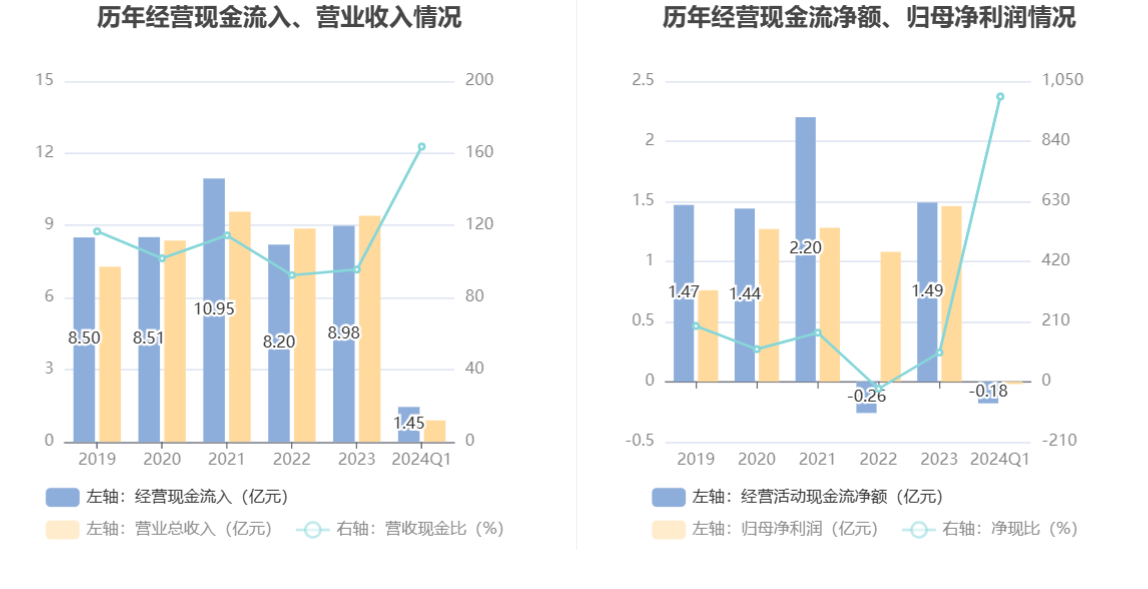 2024年第一季度,公司经营活动现金流净额为-1753.72万元,同比减少5049.43万元,主要系本期购买商品支付款项增加所致;筹资活动现金流净额-153.19万元,同比减少16.77万元;投资活动现金流净额-6746.56万元,上年同期为-860.64万元,主要系本期购置固定资产支付款项增加所致。