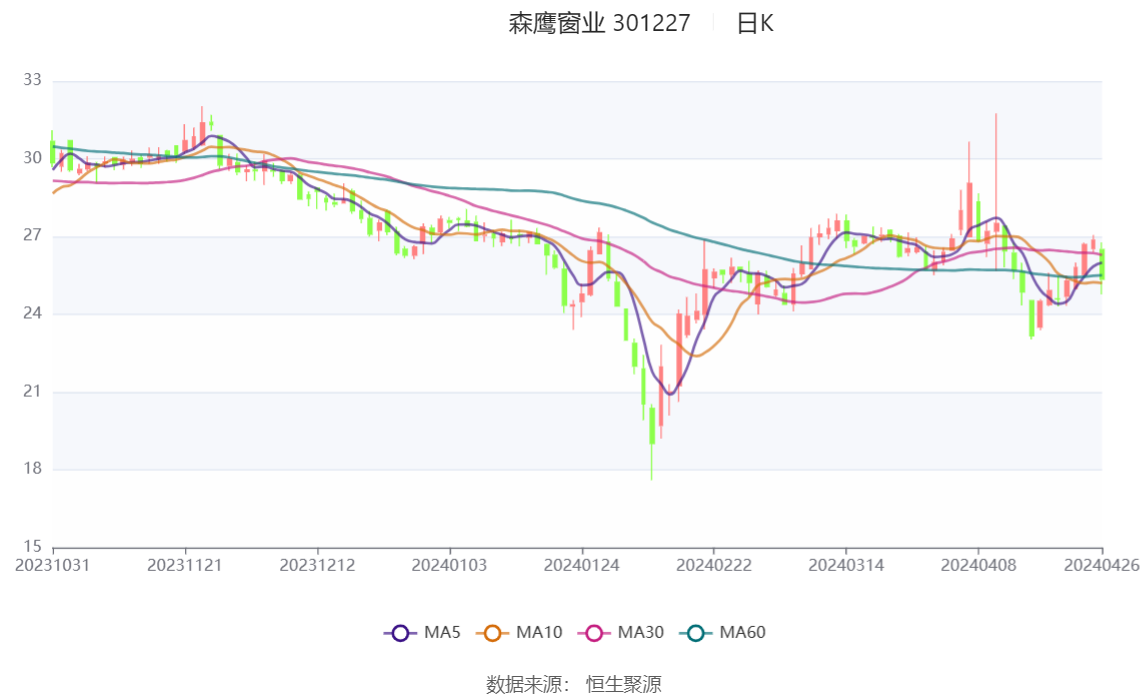 中证智能财讯森鹰窗业(301227)4月27日披露2024年一季报。2024年第一季度,公司实现营业总收入8856.96万元,同比增长3.22%;归母净利润亏损176.06万元,上年同期亏损560.53万元;扣非净利润亏损884.06万元,上年同期亏损820.43万元;经营活动产生的现金流量净额为-1753.72万元,上年同期为3295.71万元;报告期内,森鹰窗业基本每股收益为-0.0186元,加权平均净资产收益率为-0.10%。