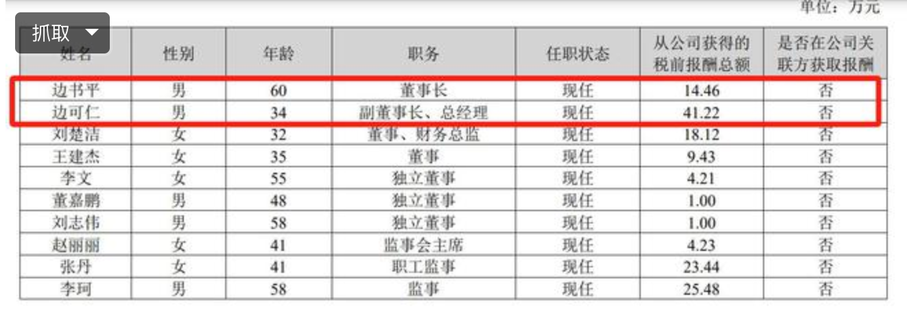 2023年,据财报披露,报告期内,边可仁作为森鹰窗业的副董事长领走41.22万元年薪,是当年森鹰股份董监高中,年薪第二高。