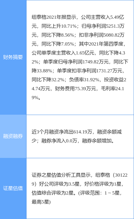 纽泰格发布业绩预告,预计2022年一季度归母净利500万元-600万元,同比下降67.61%-73%。报告期内,公司直接材料占当期生产成本的比例均在50%以上,占比较高。其中作为主要原材料的铝锭和塑料粒子采购价格均有较大幅度的上涨,导致公司产品毛利率下滑,经营利润不及上年同期。
