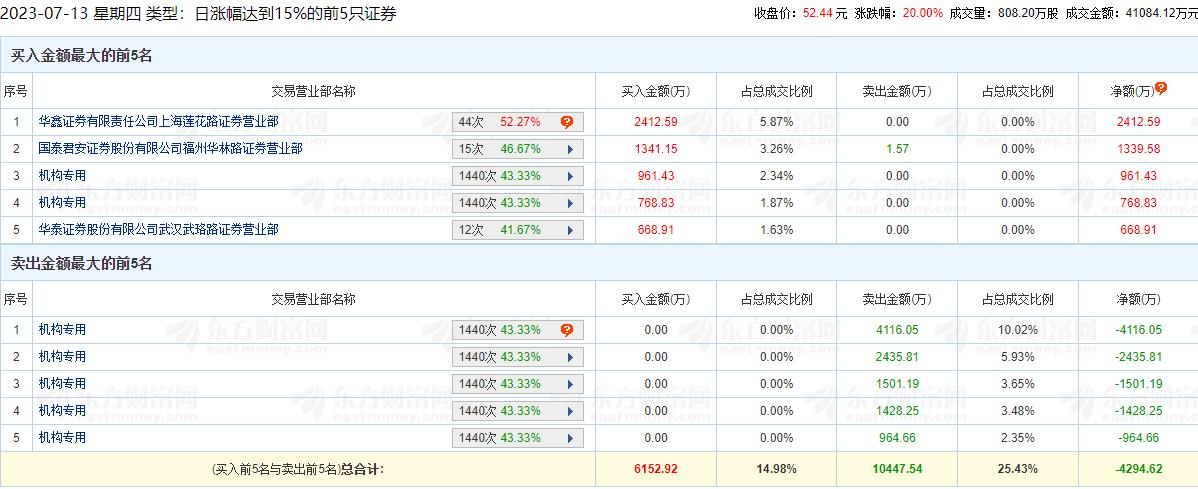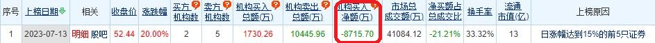 龙虎榜数据显示,泓博医药买入金额最大的前五名中,有2家机构专用席位;卖出金额最大的前五名中,有5家机构专用席位。经统计,泓博医药今日的机构席位净卖出金额为8715.70万元。