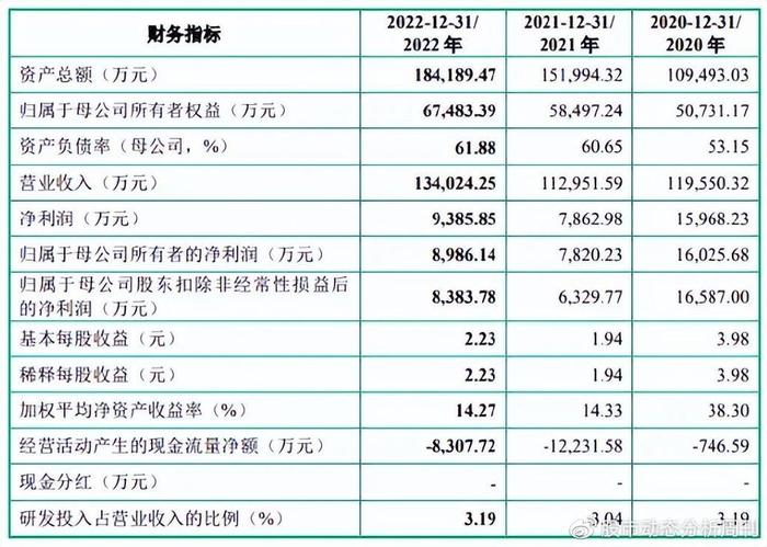 业绩情况方面,招股书显示,飞沃科技2020年至2022年营业分别约为11.96亿元、11.30亿元和13.40亿元,净利润分别约为1.60亿元、7862.98万元和9385.85万元,扣非后净利润分别为1.66亿元、6329.77万元和8383.78万元。