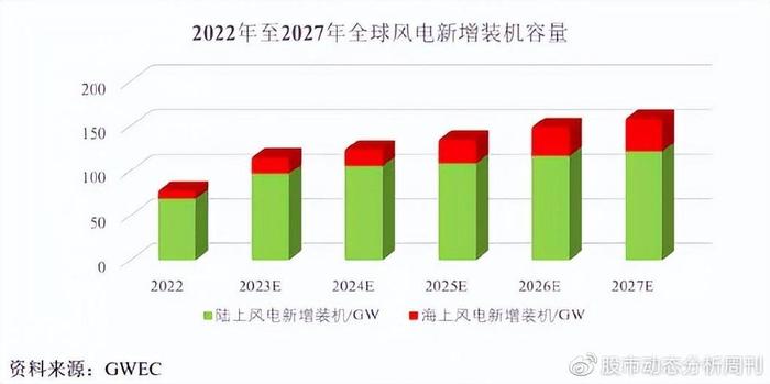 风能作为清洁、安全的新能源,资源潜力巨大,行业技术日益成熟,成本效益更高,是近年来全球增长速度最快的新能源。根据GWEC预测,2022年至2027年期间全球风电装机容量将保持逐年增长,年均复合增长率达到15.02%。预计2023年全球工业紧固件市场需求将达1200亿美元,并且预计未来全球紧固件需求将保持在近5%的速度增长。