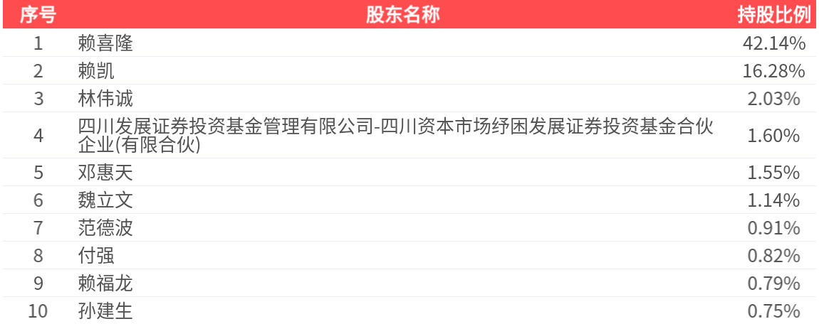 公司股东户数为6615户,前十大股东持股数量为3500.74万股,占总股本比例为68.02%,前十大股东持股情况如下: