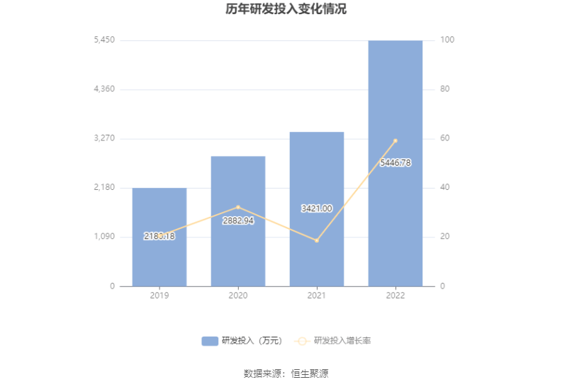 2022年全年,公司研发投入金额为5446.78万元,同比增长59.22%;研发投入占营业收入比例为4.58%,相比上年同期上升0.61个百分点。此外,公司全年研发投入资本化率为0。