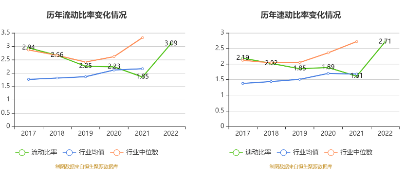 2022年,公司流动比率为3.09,速动比率为2.71。