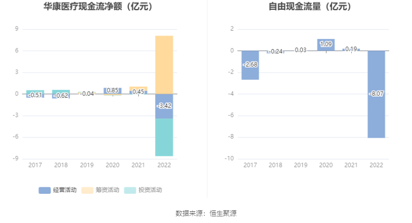 进一步统计发现,2022年公司自由现金流为-8.07亿元,上年同期为0.19亿元。