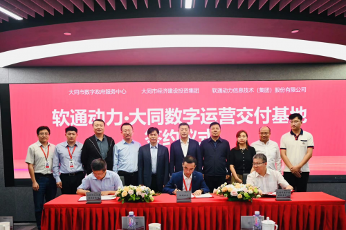 大同市政府副秘书长、数字政府中心主任韩杰,大同市经济建设投资集团有限责任公司党委书记、董事长刘如岩与软通动力数字运营服务线联席总裁王新国作为代表签署合作协议。大同市副市长孟维君,软通动力执行副总裁黄立、大同市政府驻北京联络处副主任杨生玺、大同市就业和人才服务中心主任王纵驰,大同市数字城投董事长张伟,中科城市大脑董事长曹辉,总裁赵英翔和软通动力数字运营服务线核心团队等出席并见证签约。