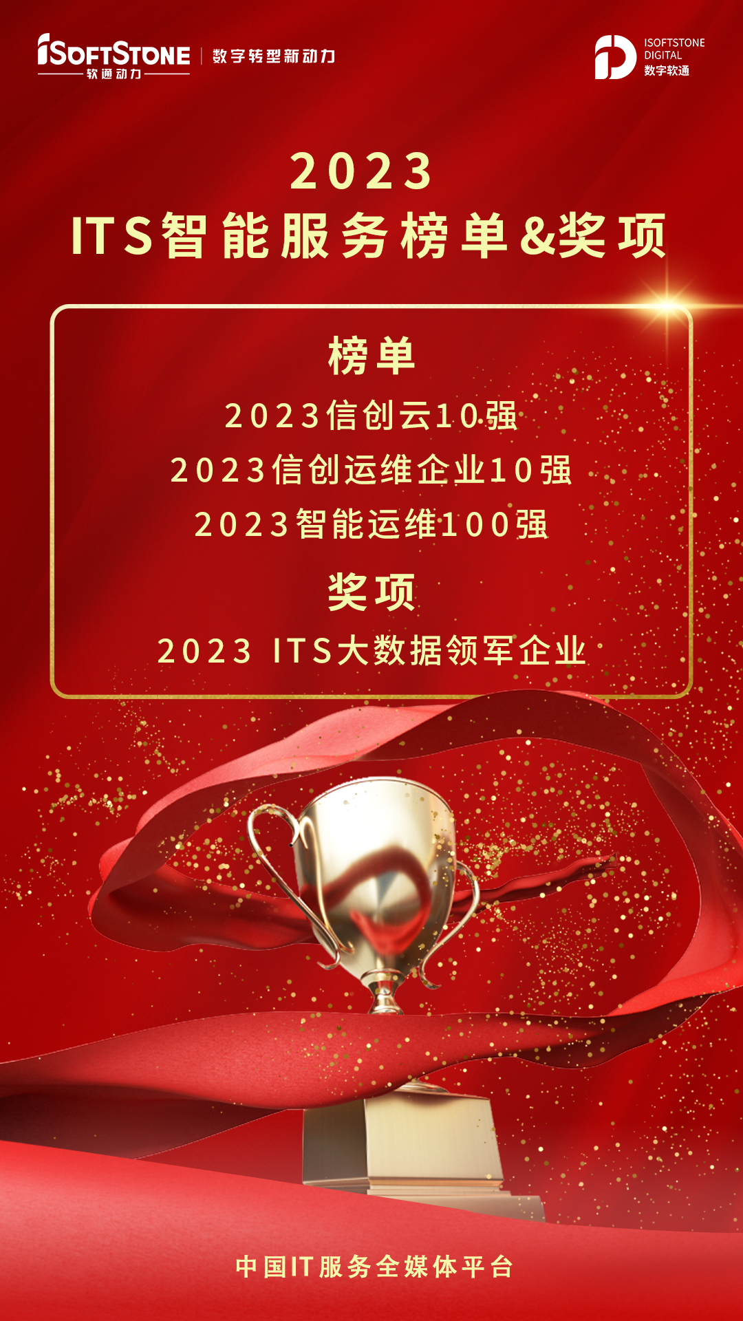 “ITS智能服务榜单”是中国IT服务领域的权威榜单。在此次评选中,软通动力入选其中2023信创云10强、2023信创运维企业10强、2023智能运维100强等细分领域榜单,并荣膺“2023 ITS大数据领军企业”奖项。此外,软通动力董事长兼首席执行官刘天文荣获“2023 ITS智能服务领军人物”称号。