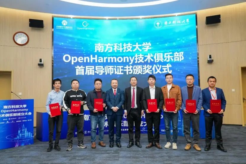 在活动现场,鸿湖万联及软通教育多位专家获颁“南方科技大学 OpenHarmony 技术俱乐部首届导师证书”。