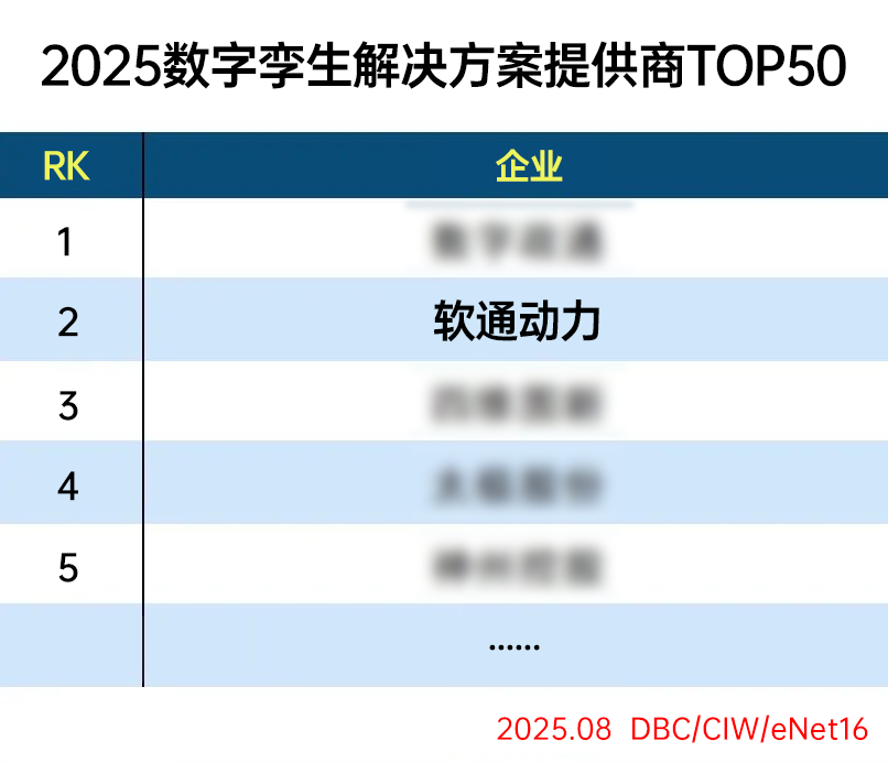 8月4日,DBC德本咨询发布“2025数字孪生解决方案提供商TOP50”榜单,软通动力凭借在数字孪生领域的卓越表现和智能化创新突破成功上榜,位列第2名。这是软通动力连续三年荣登该榜单,不仅彰显了软通动力在数字孪生技术领域的领先地位,也反映了业界对公司市场影响力的高度认可。