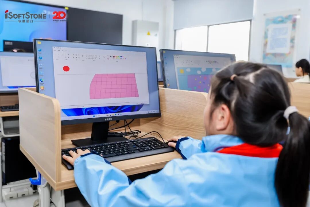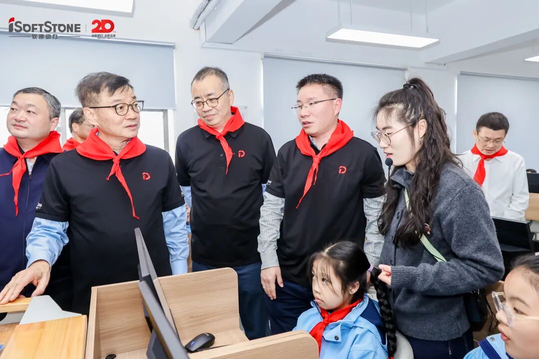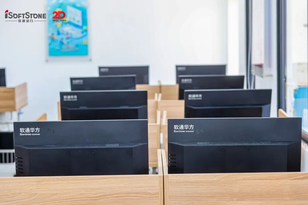 在校方的引导下,嘉宾们参观了刚刚落成的软通AI教室,零距离感受科技为传统课堂带来的深刻变革。这间充满现代感的教室,配备了软通动力自有品牌“软通华方”的全套设备:高性能电脑确保了教学流程的流畅稳定,智慧大屏带来了沉浸式的互动体验,量身定制的教学软件则能根据学生的学习进度提供个性化辅导。