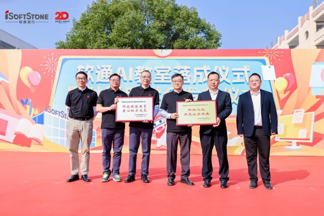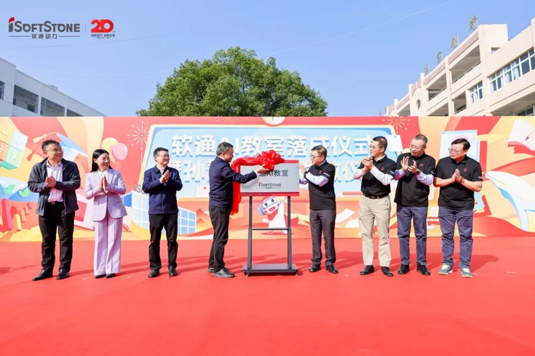 活动期间,京山市委副书记、市长鲁雷,市人大常委会主任杨宜云,市政协主席易红梅,市委常委王汉丰与软通动力集团董事长兼首席执行官刘天文,软通控股有限公司董事长刘天星,软通动力集团董事兼首席人力资源官黄颖,软通动力计算产品与智能电子业务总裁韩智敏共同拉开鲜艳的红绸,标志着软通AI教室正式投入使用。校方代表为表谢意,回赠了精心制作的纪念牌匾,既承载着对企业善举的感谢,更饱含全校师生对未来的美好期许。