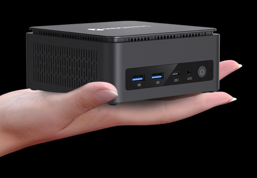 这款imini E300延续机械革命迷你主机的精致设计理念,整机净重0.48kg,巴掌大小的机身兼具质感与便携性,可灵活摆放于办公桌、会议台、壁挂安装等多种场景,彻底告别传统台式机的笨重体积,最大化释放桌面空间,打造清爽整洁的商务办公环境。