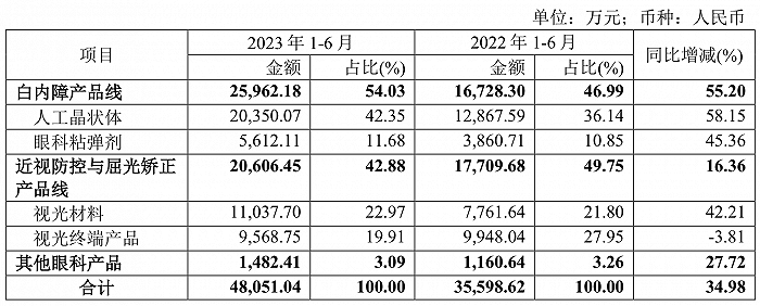 比如昊海生科(688366.SH)也有涉及眼科的业务,主要产品是白内障领域的人工晶状体、眼科粘弹剂等,近视防控与屈光矫正领域的角膜塑形镜、PRL等,以及眼表及眼底疾病领域自研的眼舒康润眼液、盐酸莫西沙星滴眼液、眼内填充用生物凝胶产品等。根据半年报,昊海生科眼科产品实现主营业务收入48051.04万元,较上年同期增长12452.42万元,增幅为34.98%。2023年前三季度,昊海生科净利润3.27亿元,同比增幅102.04%。