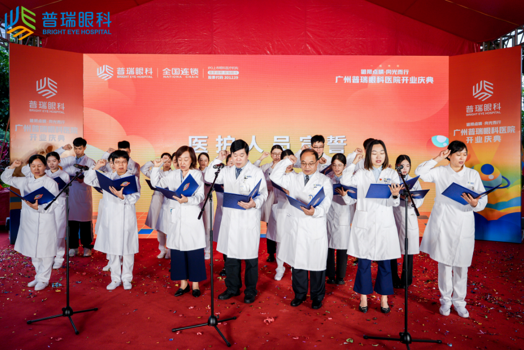 中山大学中山眼科中心、国之大医葛坚教授,梅花村街道办事处党工委书记杨智华,人民街街道办事处神剑主任,致公党广州市越秀区基层委员、越秀区人大常委会光塔街道工委李健坤,广州市医学会眼科学分会主任委员高宗银教授,广州医科大学附属第二医院沙翔垠教授,中山大学中山眼科中心吴明星教授、杨华胜教授、冀建平教授,广东省人民医院张良教授,中山大学孙逸仙纪念医院蓝育青教授,广州医科大学附属第一医院程浩教授,中山大学附属第一医院万鹏霞教授,广州市第一人民医院鹤洞分院冷云霞院长,普瑞眼科董事长徐旭阳、副总经理兼大湾区总经理刘中香,华厦大酒店汪浩然董事长、方芳副总经理,人民街商会会长周小娟,中国银行华厦大酒店支行曾文健行长,上海普瑞公益基金会理事长晏和淘等嘉宾出席开业典礼。