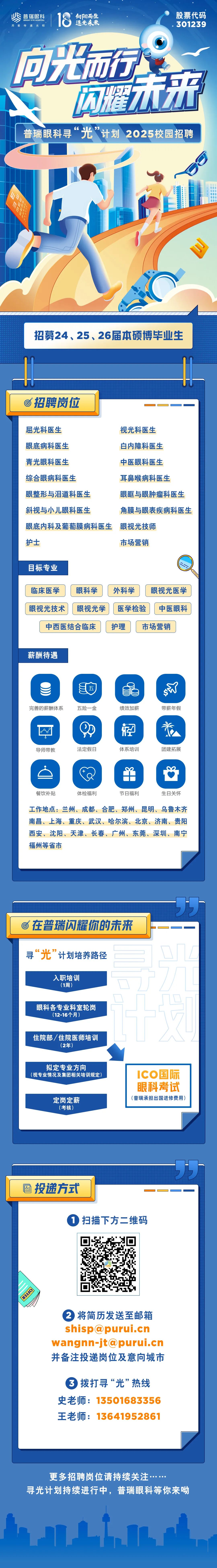 向光而行 闪耀未来 | 普瑞眼科校园招聘全国热招岗位