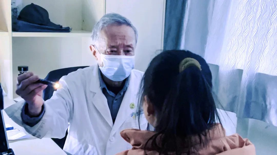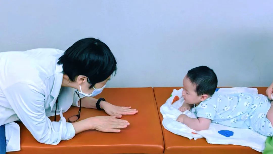 ▲岳以英教授为5个月斜视婴儿看诊