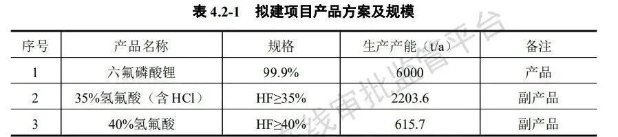 据了解,该项目投资35608万元,位于罗田县经济开发区宏源路8号。主要新建6000吨/年六氟磷酸锂车间、制氮站、初期雨水池、洗桶间;改造2000吨成品车间,其他依托公司现有条件。