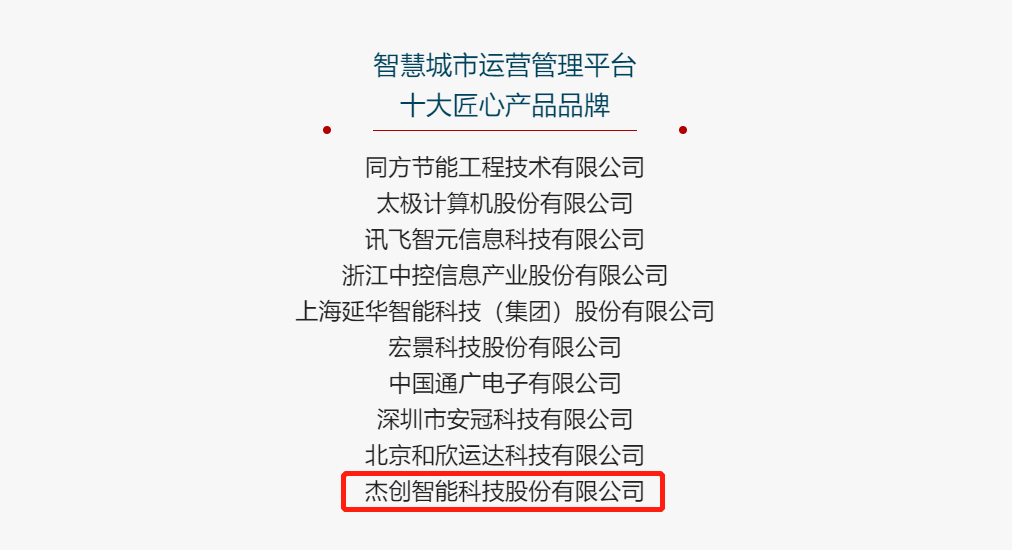 近日,《智能建筑》杂志社公布了“2022年度中国智能建筑行业十大匠心产品品牌”获奖名单。杰创智能凭借在智能建筑行业过硬的技术实力,优质的产品和服务,及较高的品牌影响力,斩获“建筑园区智慧管控平台十大匠心产品品牌”、“智慧城市运营管理平台十大匠心产品品牌”两项殊荣。