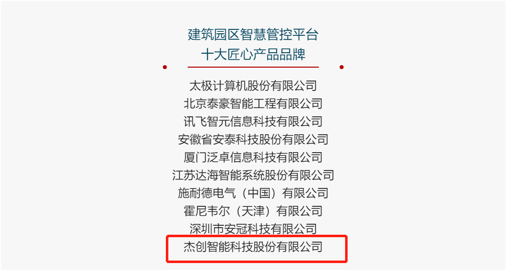 此次获奖,标志着公司的科技产品及技术服务,不仅获得了市场以及客户的认可,更赢得行业的肯定。未来,杰创智能将继续响应国家新型智慧城市建设战略部署,积极探索行业先进技术和应用,进一步弘扬精益求精的工匠精神,不断提升品牌影响力和企业竞争力,力争以更具核心优势的产品及服务,为智慧建筑行业添砖加瓦,助推中国城市建设智慧升级。