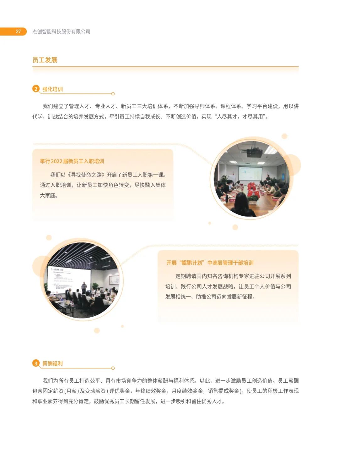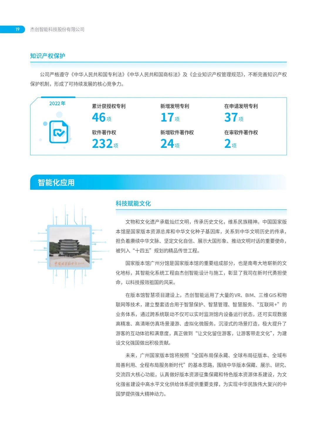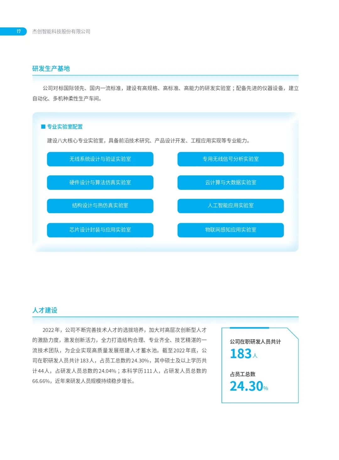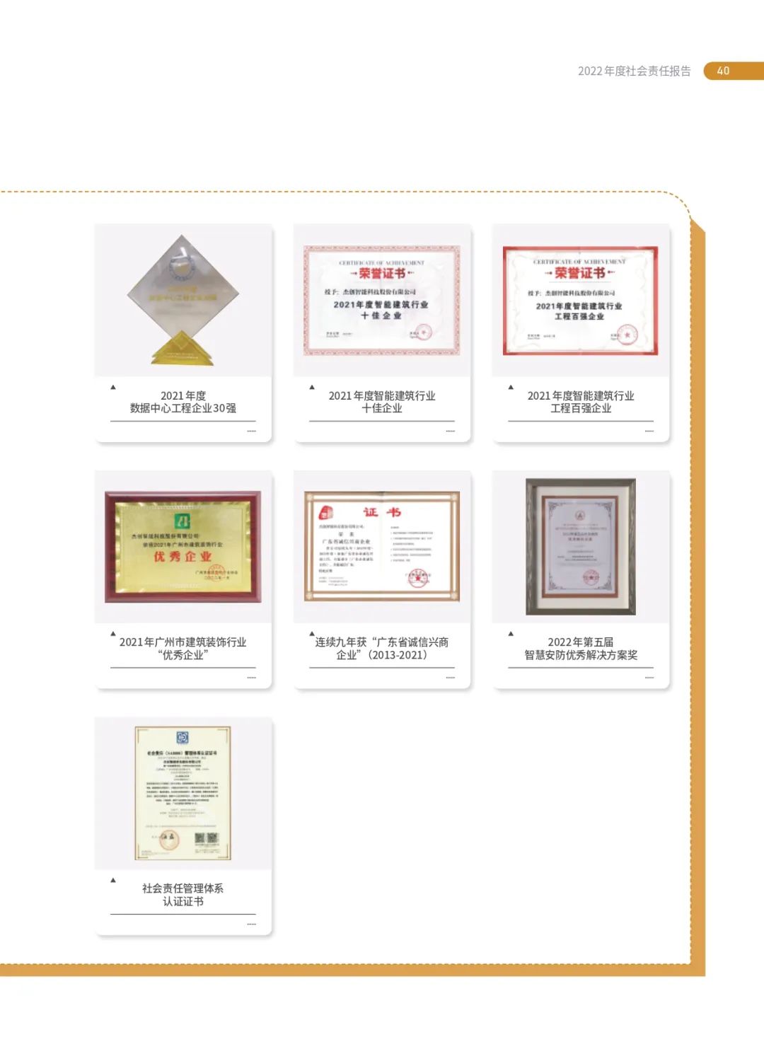 日前,杰创智能(301248)发布2022年社会责任报告(环境、社会及管治报告),这是杰创智能首次公开发布社会责任报告,报告从公司治理、科技创新、客户服务、绿色环保、公益慈善等角度,全面展示了公司坚持服务国家战略、服务行业发展,推动经济社会可持续和高质量发展的履责实践和成效。