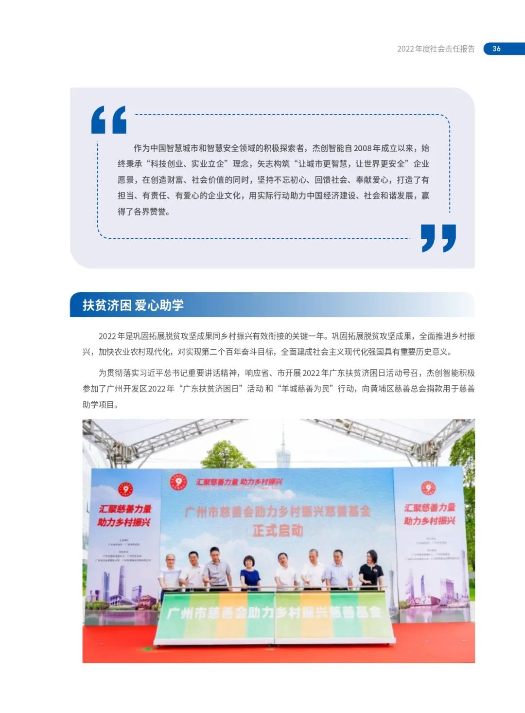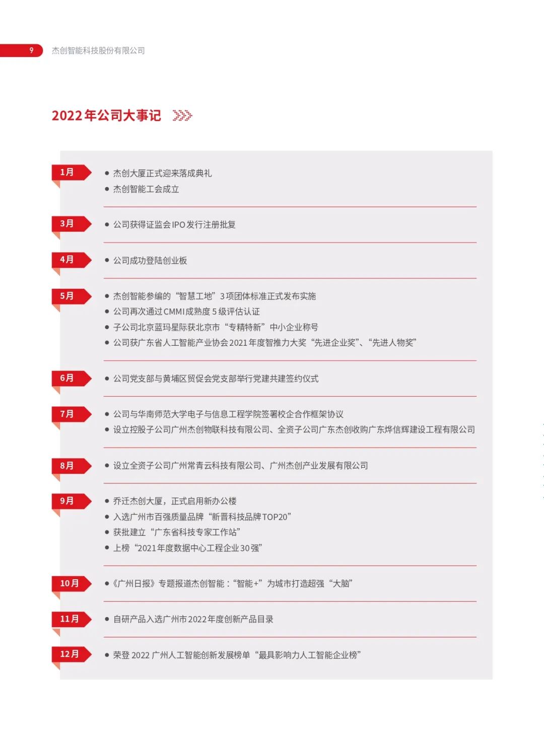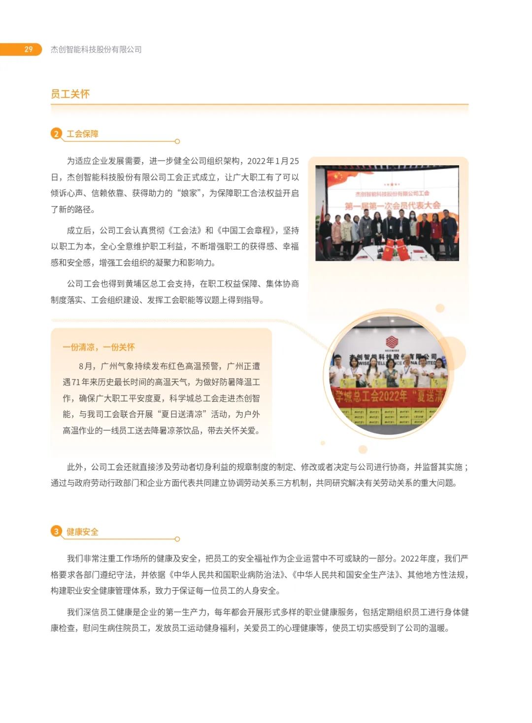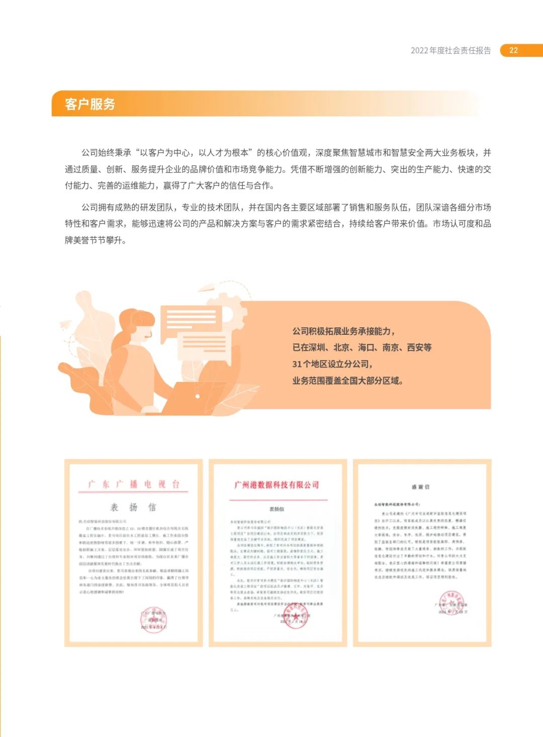 日前,杰创智能(301248)发布2022年社会责任报告(环境、社会及管治报告),这是杰创智能首次公开发布社会责任报告,报告从公司治理、科技创新、客户服务、绿色环保、公益慈善等角度,全面展示了公司坚持服务国家战略、服务行业发展,推动经济社会可持续和高质量发展的履责实践和成效。