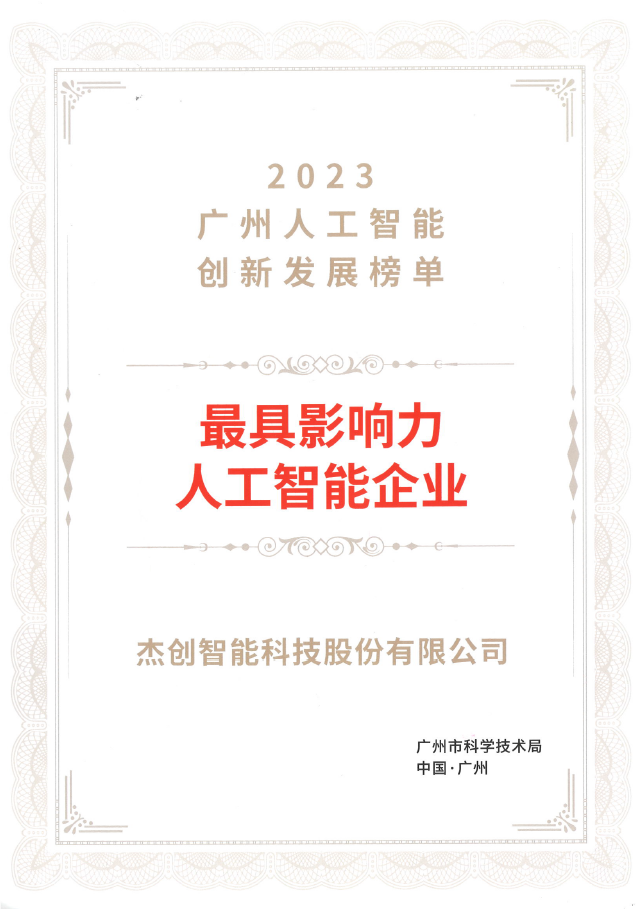 据悉,该榜单是在广州市科技局指导下,由广州科技金融集团、广州产业发展研究院和普华永道中国联合发起,通过“公开征集+数据挖掘”相结合方式,邀请人工智能产业链链主单位及头部人工智能企业多位专家参与评审,从“创新能力、企业规模、团队组成、融资能力、市场效应”五个维度,经过模型筛选及实地考察,遴选出来。本次获得双料奖项,是对杰创智能在人工智能领域所取得成绩的高度认可。