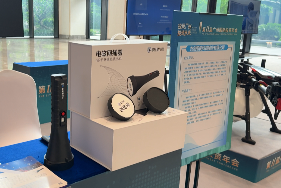 6月26日,第十一届广州国际投资年会在广州市白云国际会堂举行。千余名全球商业精英奔赴广州,共绘投资发展图景,共逐产业创新浪潮。杰创智能携电磁网捕器、电磁网捕机器狗、电磁破窗消防无人机等智能电磁安保设备亮相投资年会成果展,展现了公司在电磁技术应用领域的突破性成果,彰显了广州在高科技产业领域的投资价值和发展潜力。
