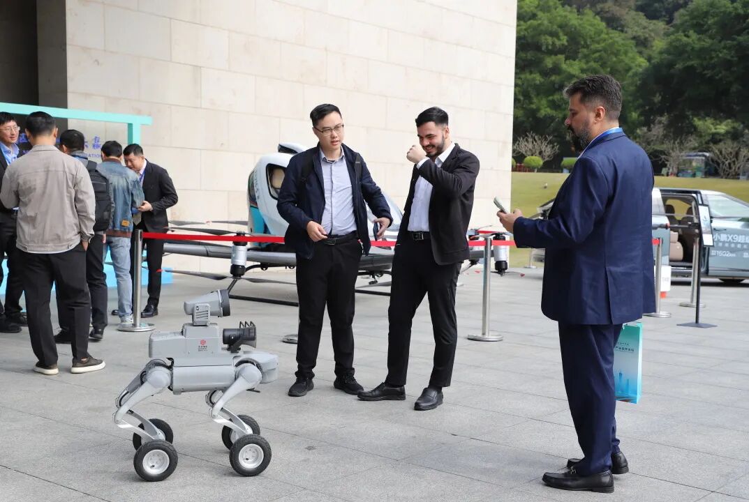 ▲国际嘉宾对AI巡防网捕机器狗表现出浓厚兴趣