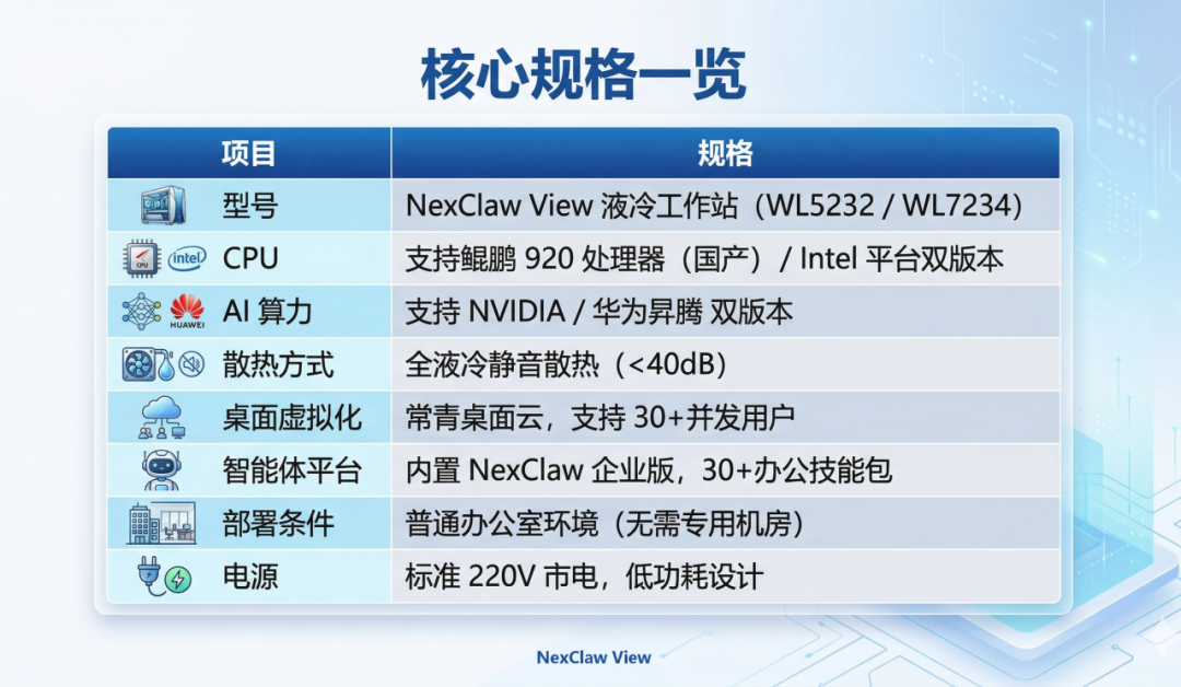 这不是一台传统意义上的服务器或PC,而是将全液冷静音散热、常青桌面云安全架构、NexClaw企业级AI智能体三者深度融合的新产品。