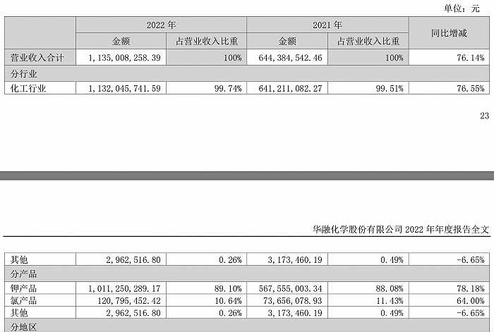 在2022年年报中,可以看到华融化学氯产品的毛利率为-70.35%。