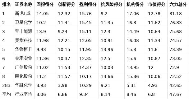 从所属行业角度来看,在申万一级基础化工行业的428家上市公司中,华融化学位列行业第282位,行业平均分为47.67分。