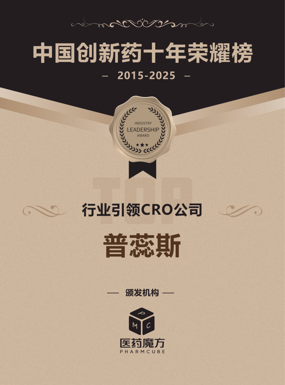 普蕊斯凭借优秀的服务质量、基于大数据驱动下的技术升级、前瞻的专业化布局以及对产业创新的持续赋能,荣获"行业引领CRO公司"荣誉。