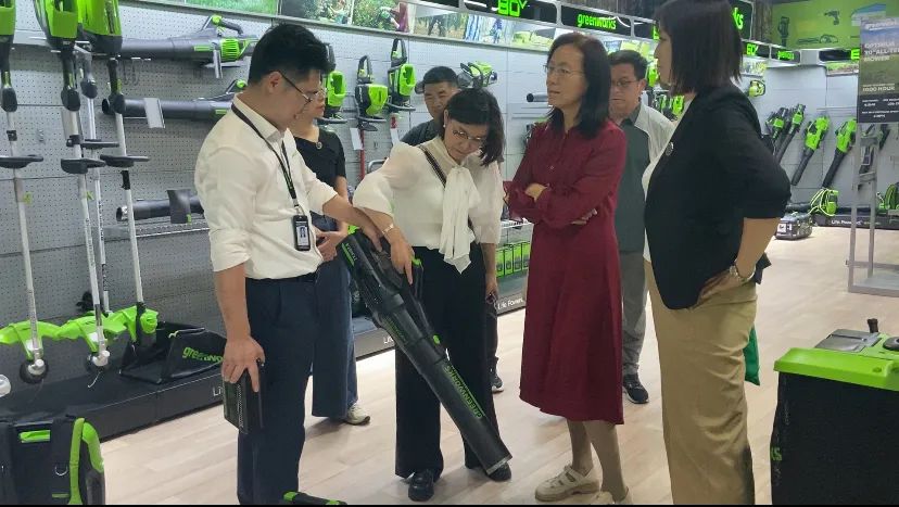 随后,众人来到格力博智能化设备展厅。展厅内,琳琅满目的锂电园林工具与智能化解决方案依次呈现。工作人员不仅从产品的研发理念、技术创新点,到实际应用场景与客户案例,进行了全方位、细致的讲解,大家都上手进行了尝试。