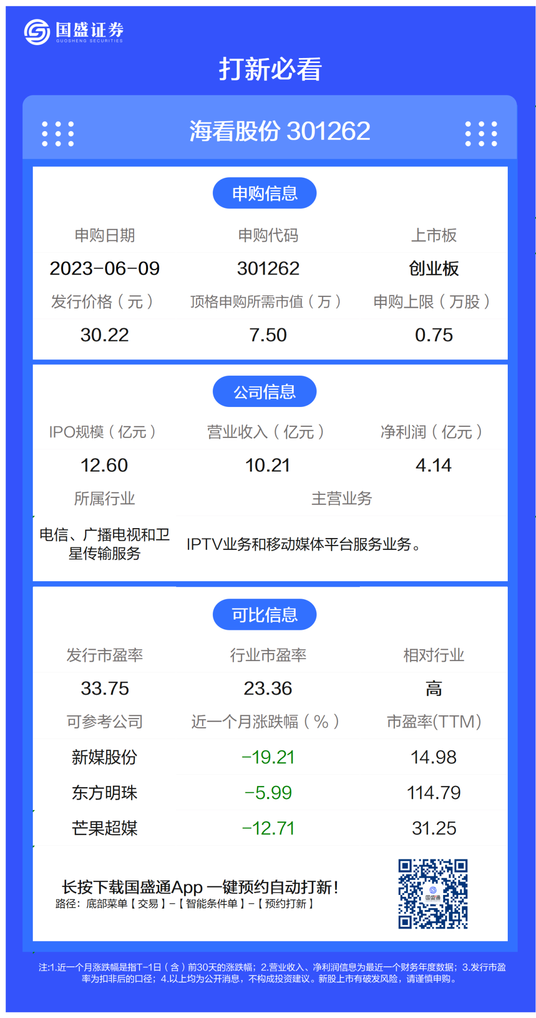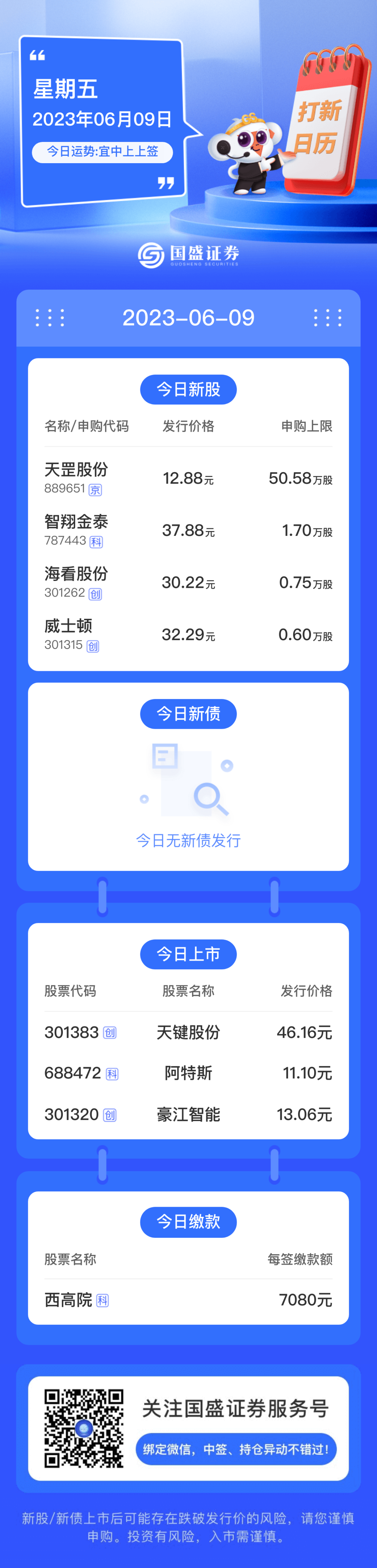 今日申购:海看股份、智翔金泰、威士顿、天罡股份(京)