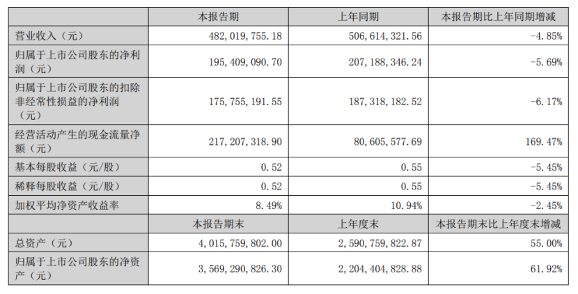 财报数据显示,上半年海看股份共实现营业收入为4.82亿元,与2022年上半年比较减少了4.85%,上年同期为5.07亿元;归属于上市公司股东的净利润为1.95亿元,同比减少了5.69%,上年同期为2.07亿元。至本期末,其总资产为40.16亿元,归属于上市公司股东的净资产为35.69亿元。