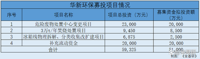 此番上市,华新环保拟募资5.10亿元,分别用于“危险废物处置中心变更项目”、“3万t/年焚烧处置项目”、“冰箱线物理拆解、分类收集改扩建项目”、“补充流动资金”。