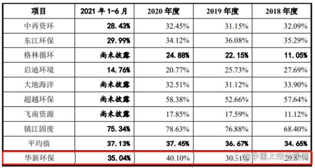 近年来,固废处理行业整体利润水平呈稳定状态。2018年至2020年,固废处理行业主要上市公司及公司的毛利率情况如下表所示: