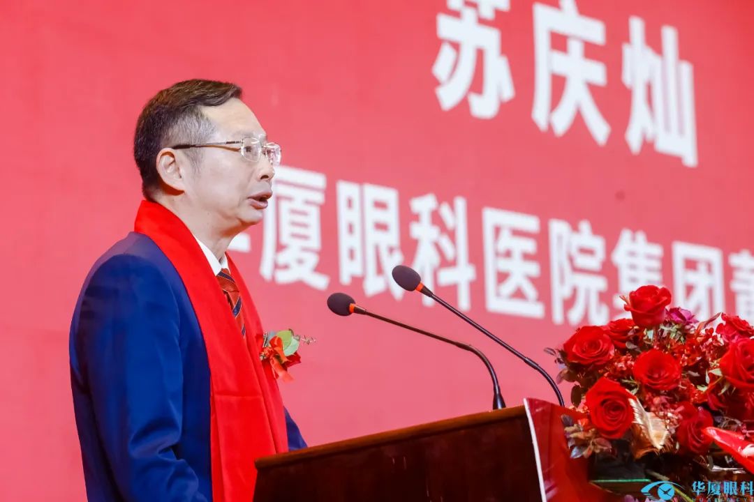 华厦眼科董事长苏庆灿对莅临本次上市敲钟仪式的领导嘉宾表示热烈欢迎,并衷心感谢社会各界多年来对华厦眼科的关心、支持、帮助。苏庆灿表示,华厦眼科成功上市,为公司进一步发展助推了新动能,未来,华厦眼科将加大投资并购力度,加大科研投入,努力实现医院外生增长与并购增长双轮驱力,为更多患者提供多层次、多样化优质服务,并以优异的业绩发展来回报客户、回报员工、回报股民、回报社会。