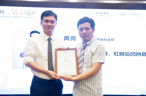 经过十多年的磨练,黄亮积累了扎实的眼病诊治经验,屈光手术技术日臻纯熟,成为STAAR Surgical 国际认证ICL手术医生、德国蔡司“全飞秒SMILE国际认证医师”,斩获“EVO ICL之光奖”等荣誉奖项……广阔未来,在他的眼前铺展,充满了光荣与梦想。