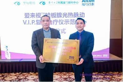 在本次学术交流会上还举行了隆重的授牌仪式,厦门眼科中心被授予“爱来视?睑板腺光热脉动V.I.P.复合治疗仪示范中心”,华厦眼科医院集团被授予“干眼诊疗联合发展平台”,这不仅代表干眼诊疗的理念与成果受到同行业界的高度认可,也意味着华厦眼科在干眼诊疗技术、临床规范、学术研究及患者服务等层面将继续迈向新的高度。