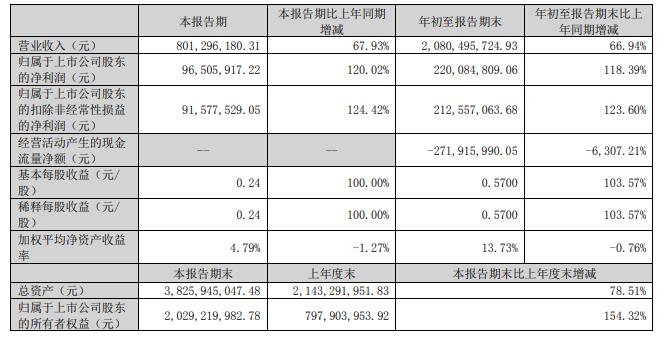 铭利达2022年第三季度报告显示,2022年第三季度,铭利达实现营业收入8.01亿元,同比增长67.93%;归属于上市公司股东的净利润9650.59万元,同比增长120.02%;归属于上市公司股东的扣除非经常性损益的净利润9157.75万元,同比增长124.42%。