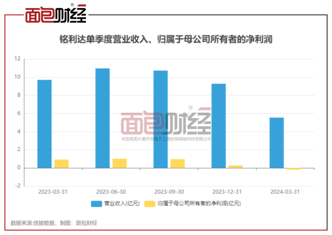 近日,铭利达披露了2024年一季报。公司2024年一季度实现营收5.55亿元,同比下降42.84%;亏损0.19亿元,由盈转亏。