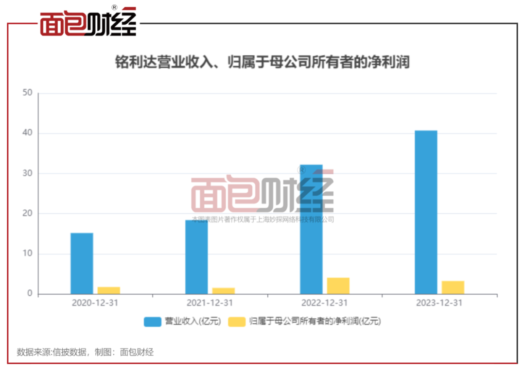 2023年,铭利达实现营收40.7亿元,同比增长26.42%;实现归母净利润3.2亿元,同比下降20.68%。