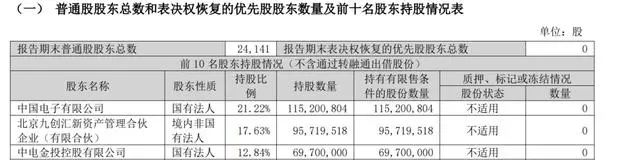 据三季报显示,截至报告期末,华大九天共24141名股东,其中,中国电子有限公司、北京九创汇新资产管理合伙企业(有限合伙)、中电金投控股有限公司分别为前三大股东。持股比例分别为21.22%、17.63%和12.84%。
