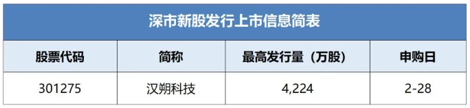 深交所近期发布的消息显示,汉朔科技股份有限公司(简称“汉朔科技”)IPO将于2月28日发起申购,股票代码“301275”,最高发行量4224万股。
